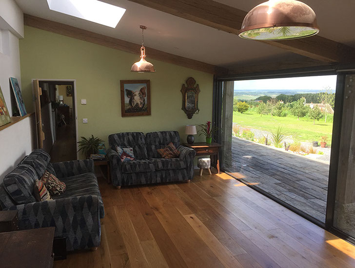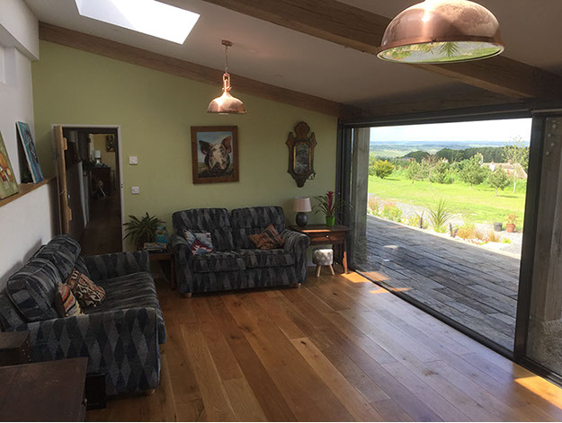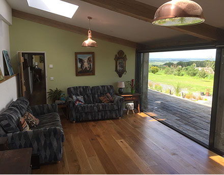 Sliding doors were used to maximise use of the patio and enjoyment of the stunning countryside views.