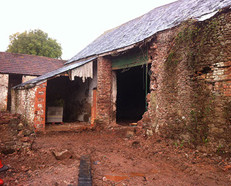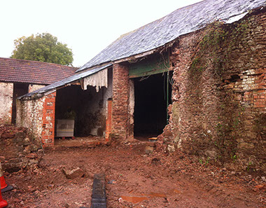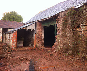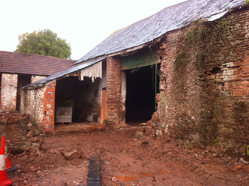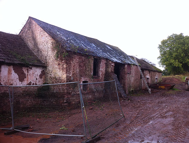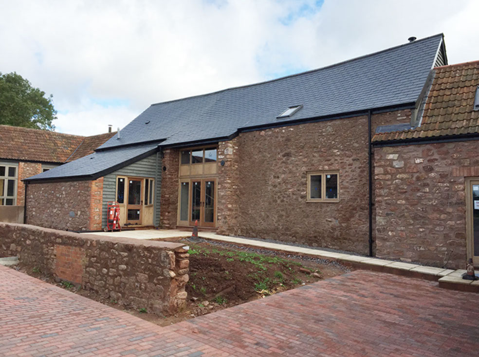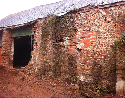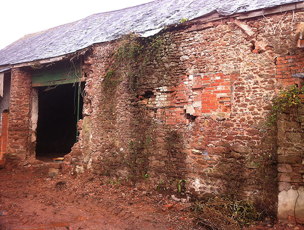 The client’s proposals were to convert the existing arrangement of barns and outbuildings into six houses. By November 2014 work had begun to stabilise the walls. Further renovation and rebuilding continued until the project was completed in August 2015. There were several significant structural challenges with this building. Major repairs were required to the walls which were a mixture of stone, brick and cob; some needed to be rebuilt.