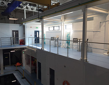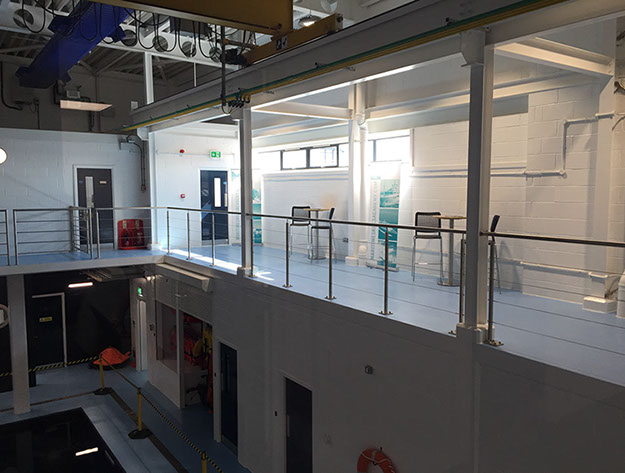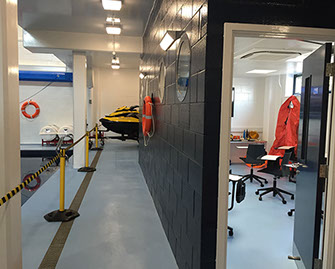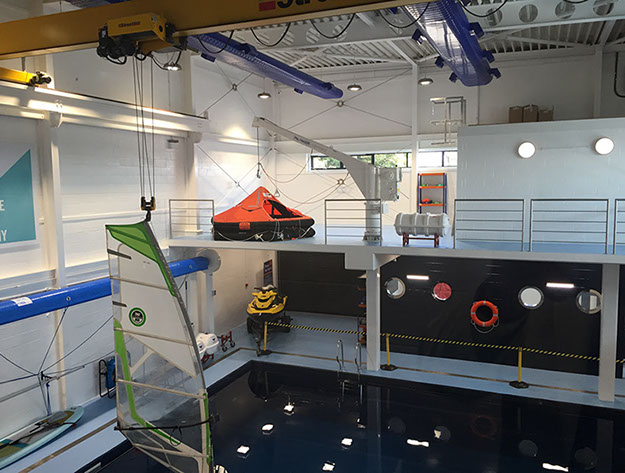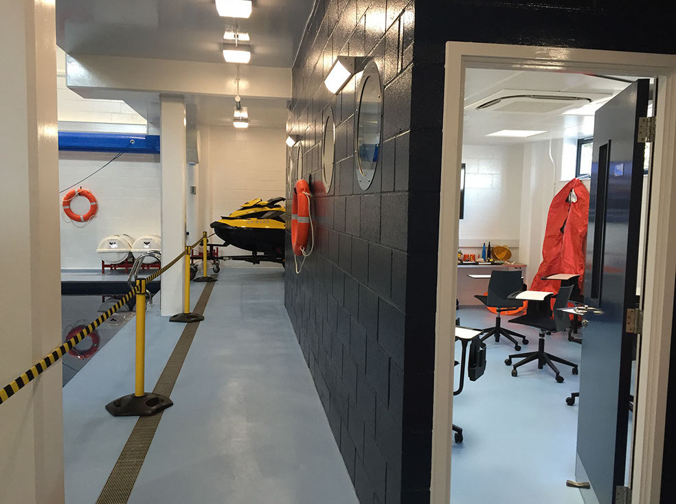 This marine survival centre is the latest phase of the overall development, which at present includes a fire training area and a Lifeboat Centre in the Port of Dover.